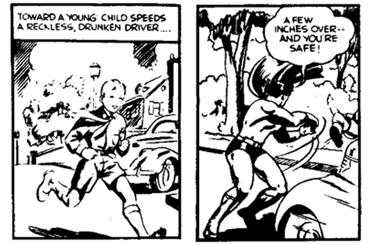 In order to extrapolate the automobile's correct appearance, we looked ahead in the story and examined how it was drawn on page 9. This also enabled us to determine the actual make and model of the car: